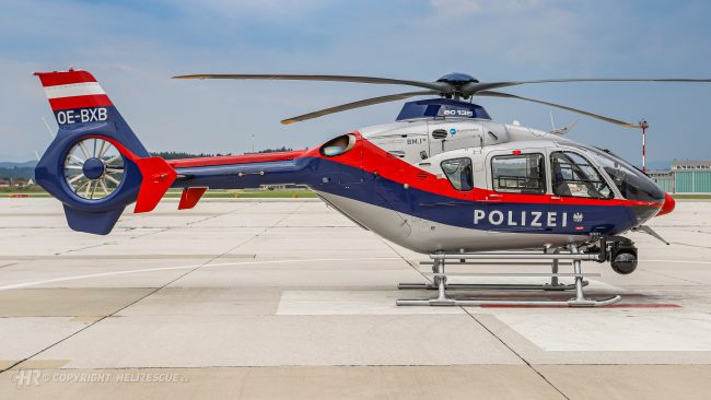 OE-BXB BM.I Flugpolizei Airbus Helicopters H135 Typenbezeichnung EC 135 P2+ Halter Bundesministerium für InneresFlugpolizei Seriennummer 0783 Baujahr 2009 2009D-HCBM Testkennung: D-HCBMAuslieferung als: EC 135 P2+ 2009AprilOE-BXB Übergabe an BM.I Flugpolizei Neue Kennung: OE-BXB